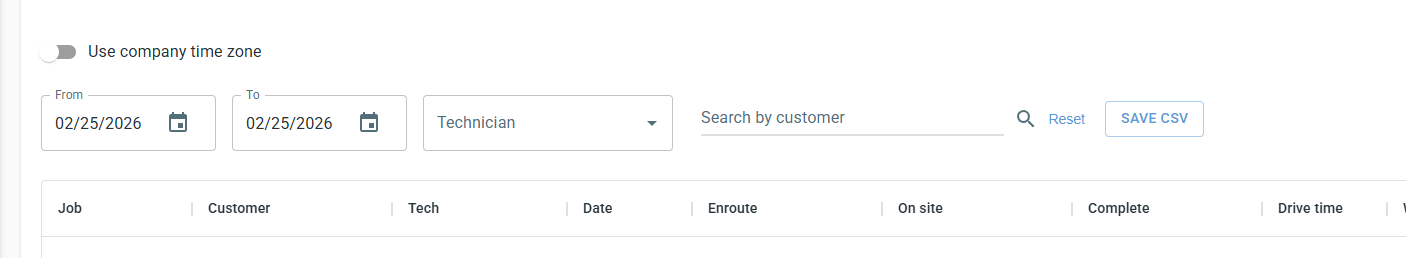 The Technician Time on Task Report now includes a new option that allows users to view report data using the company’s configured time zone instead of UTC.